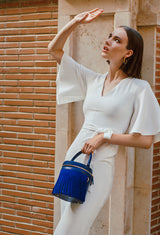 The goddess of the rainbow and color... Iris is a chic contemporary bag. This structured bag has plush suede fringes for a luxe and fun play.It is all about casual chic. This surprisingly spacious bag gives you room to carry more than your essentials and its glossy metallic hardware provides an opulent finish.