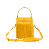 The goddess of the rainbow and color... Iris is a chic contemporary bag. This structured bag has plush suede fringes for a luxe and fun play.It is all about casual chic. This surprisingly spacious bag gives you room to carry more than your essentials and its glossy metallic hardware provides an opulent finish.